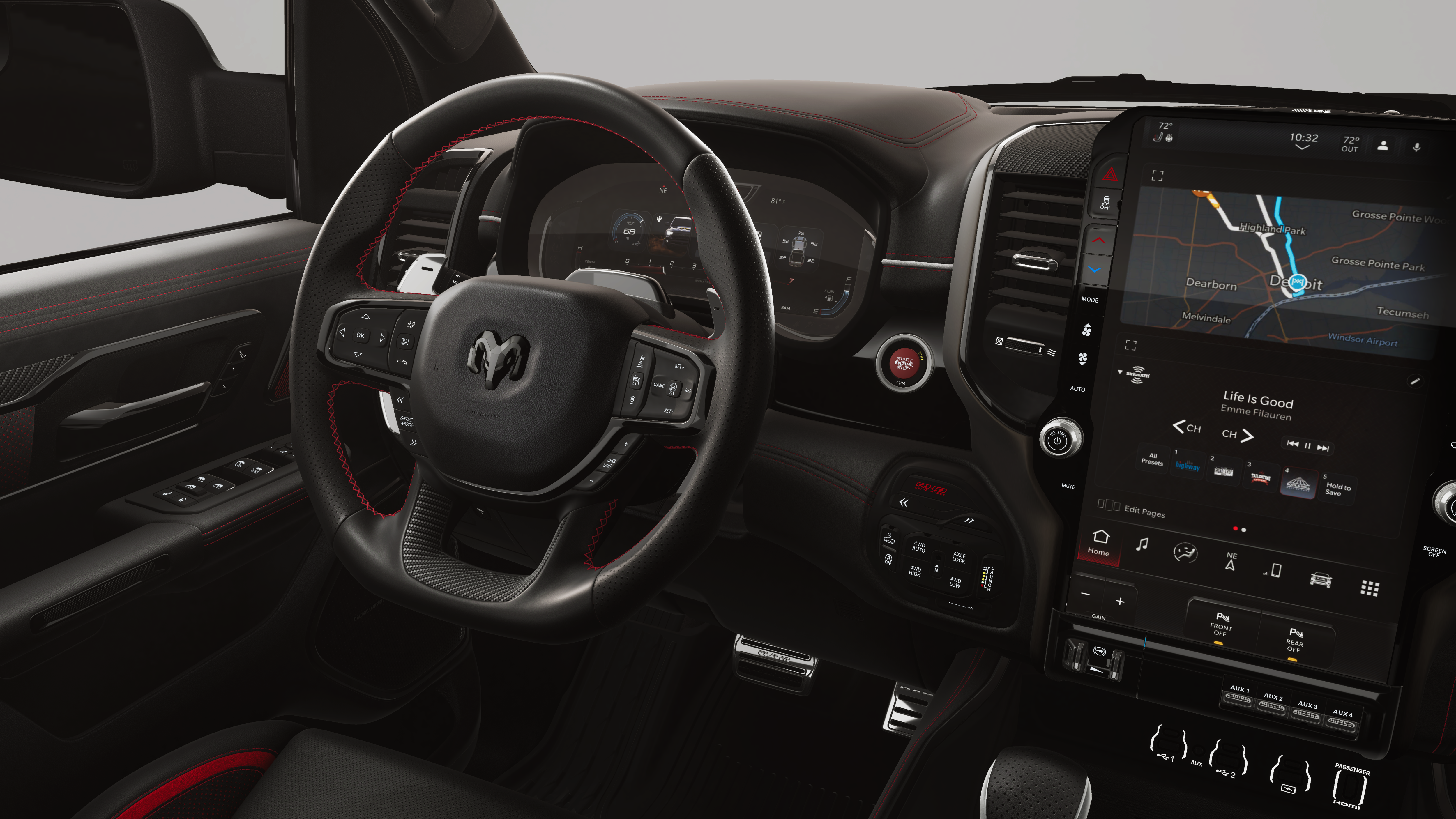- 4-Wheel Disc Brakes w/4-Wheel ABS, Front And Rear Vented Discs, Brake Assist, Hill Descent Control, Hill Hold Control and Electric Parking Brake